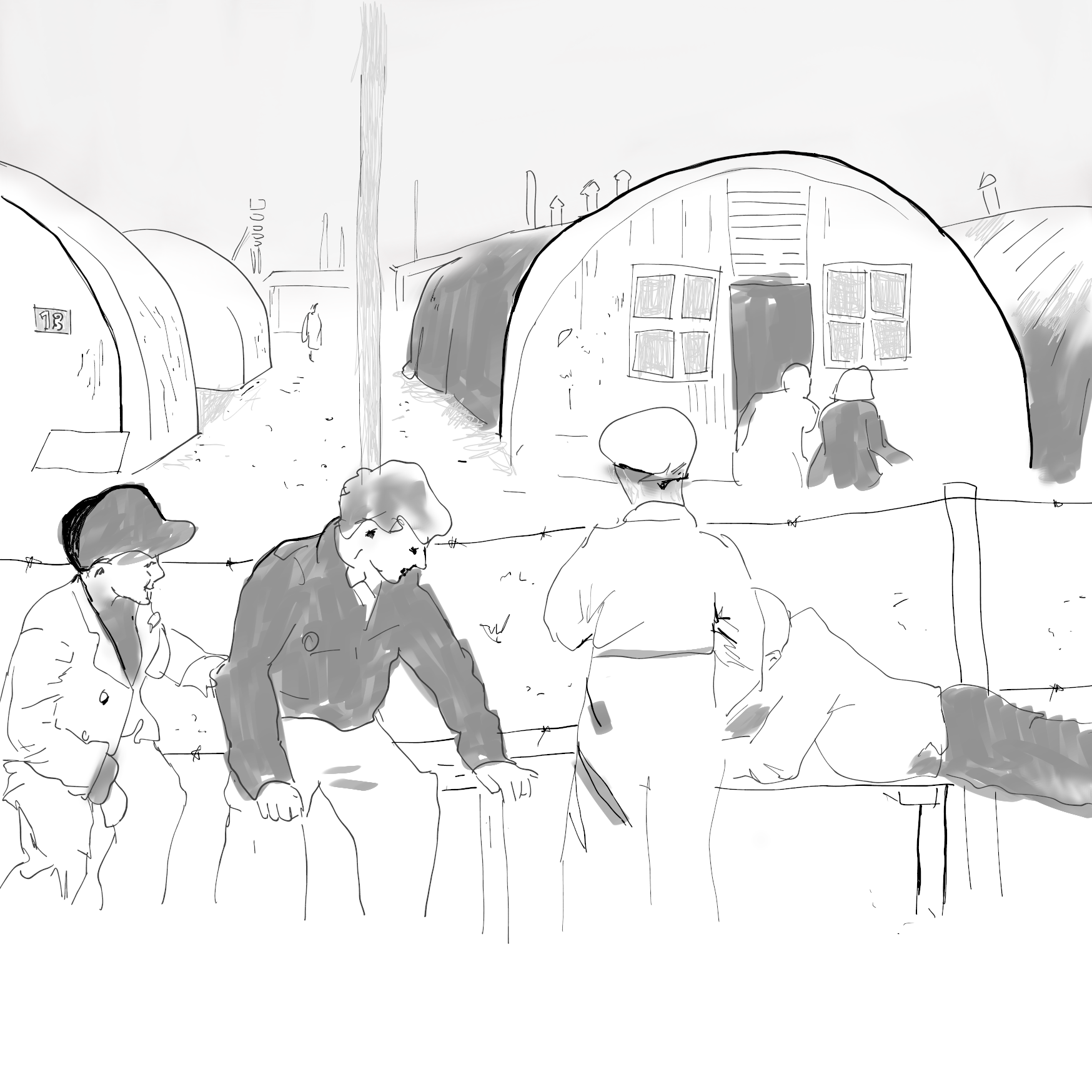 Friedland Labour camp- cattle trucks. ‘again we were terribly lucky’. The camp had held Italian prisoners, they switched sides, soldiers were captured and taken somewhere else, so frank took their place. Small camp. Franks job was the straighten the duralumin (copper and aluminium) castings. Didn’t produce many- rumour the Russians were coming. Germans fleeing past the camp. German foreman occasionally gave Frank crusts, saying they were meant for his rabbit, but frank would appreciate them more. 12 hour shift 7 days a week. People died of hunger. It felt like things were changing. Elderly german SS not fit for the role asked group to remember he treated them well and left, leaving control to the Ukranian SS who stood on the watch tower with a machine gun. Got someone walking past to switch off electric fences. Hid in the woods. Russians arrived. They didn’t really liberate Frank, the war ended and the Russians arrived.